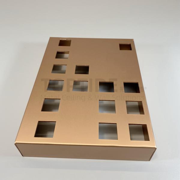 TOPTIDE customized aluminum ceiling contains plain one and perforated one. You can choose perforated ceilings with round holes, square holes, diamond holes, art holes or others to achieve a particular decoration. For instance, you can stick acrylic sheet behind perforated ceilings, and then use lights to map a peculiar image.